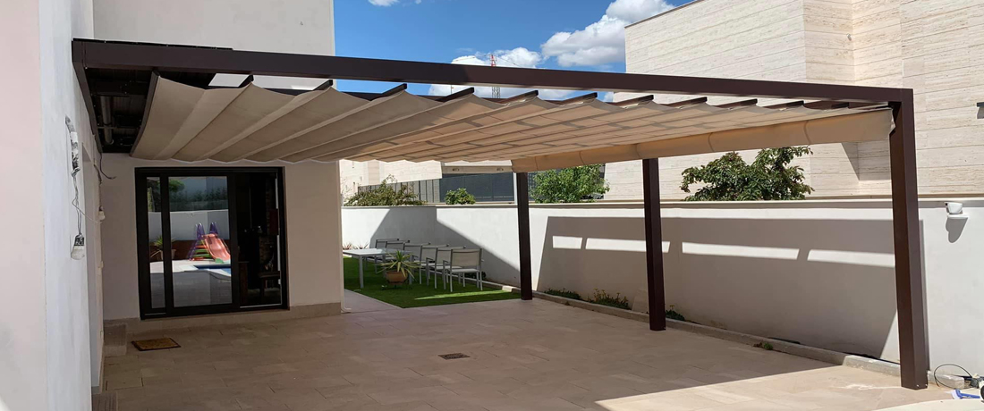 Ofrece una completa autoproteccion de la lona gracias a su estructura de aluminio y va acompañado de brazos invisibles para cubrir grandes espacios. Este puede ser manual o motorizado.