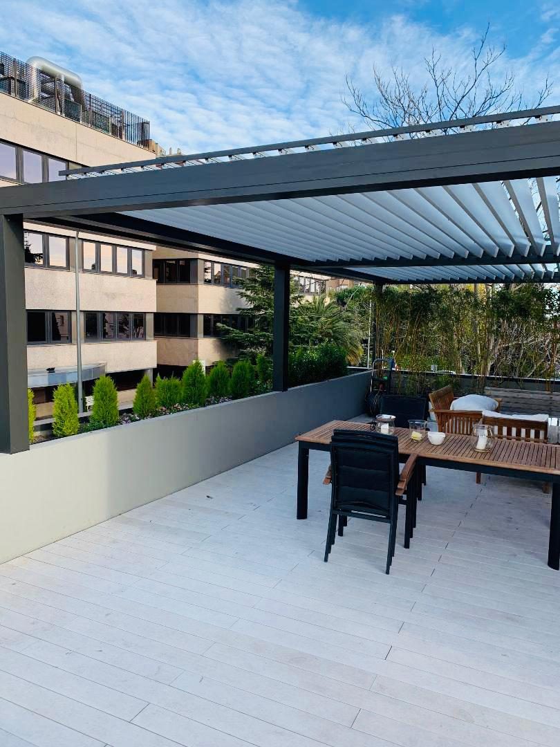 Una pérgola bioclimática es una pérgola de aluminio que permite regular la temperatura gracias a sus lamas orientables, obteniendo el máximo confort y bienestar en el interior de la misma. Se ha catalogado como una de las mejores opciones de protección solar por su diseño vanguardista y su eficiencia energética.